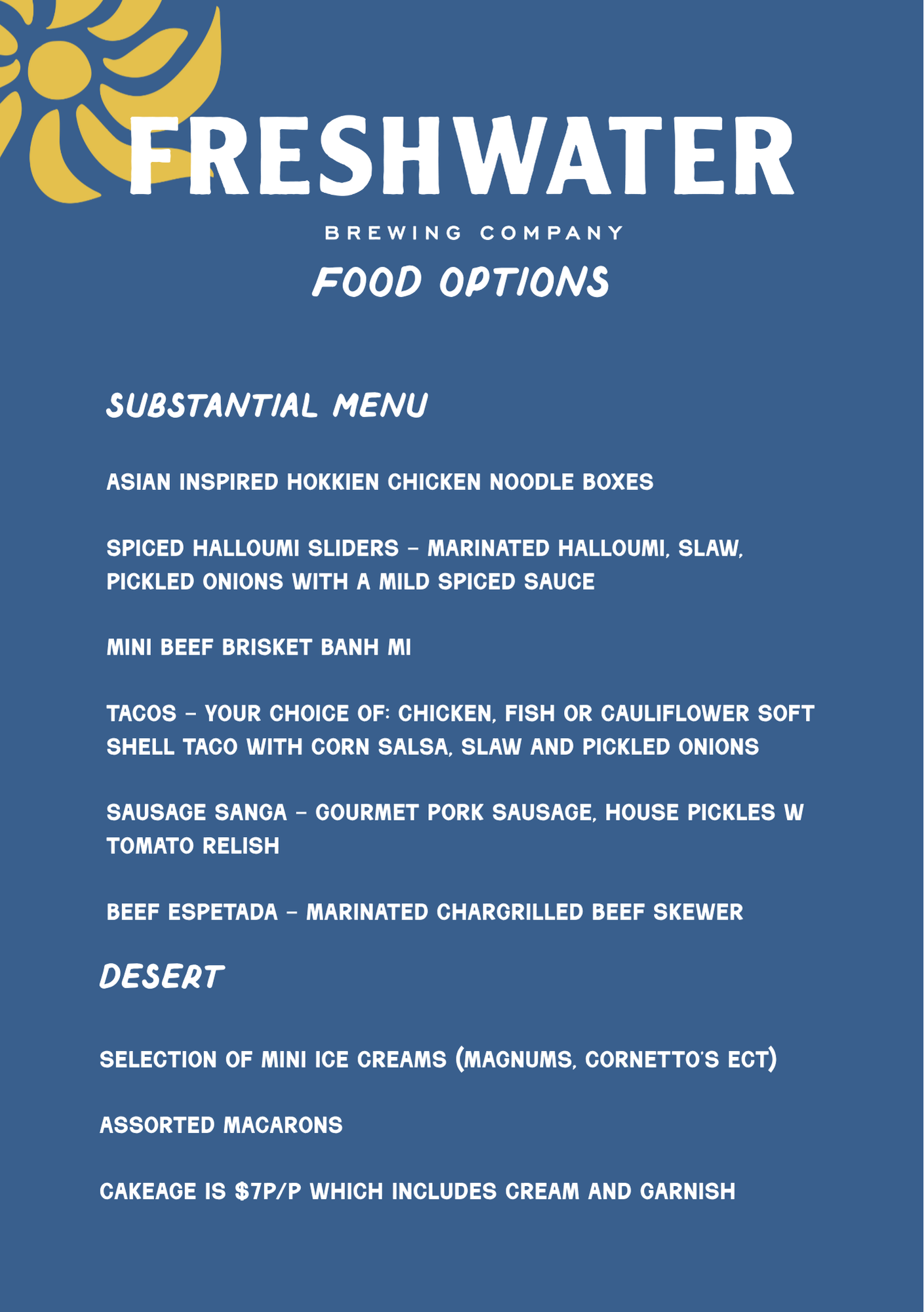 - All pricing provided in this document and/or any other menu is current when supplied, however is subject to change