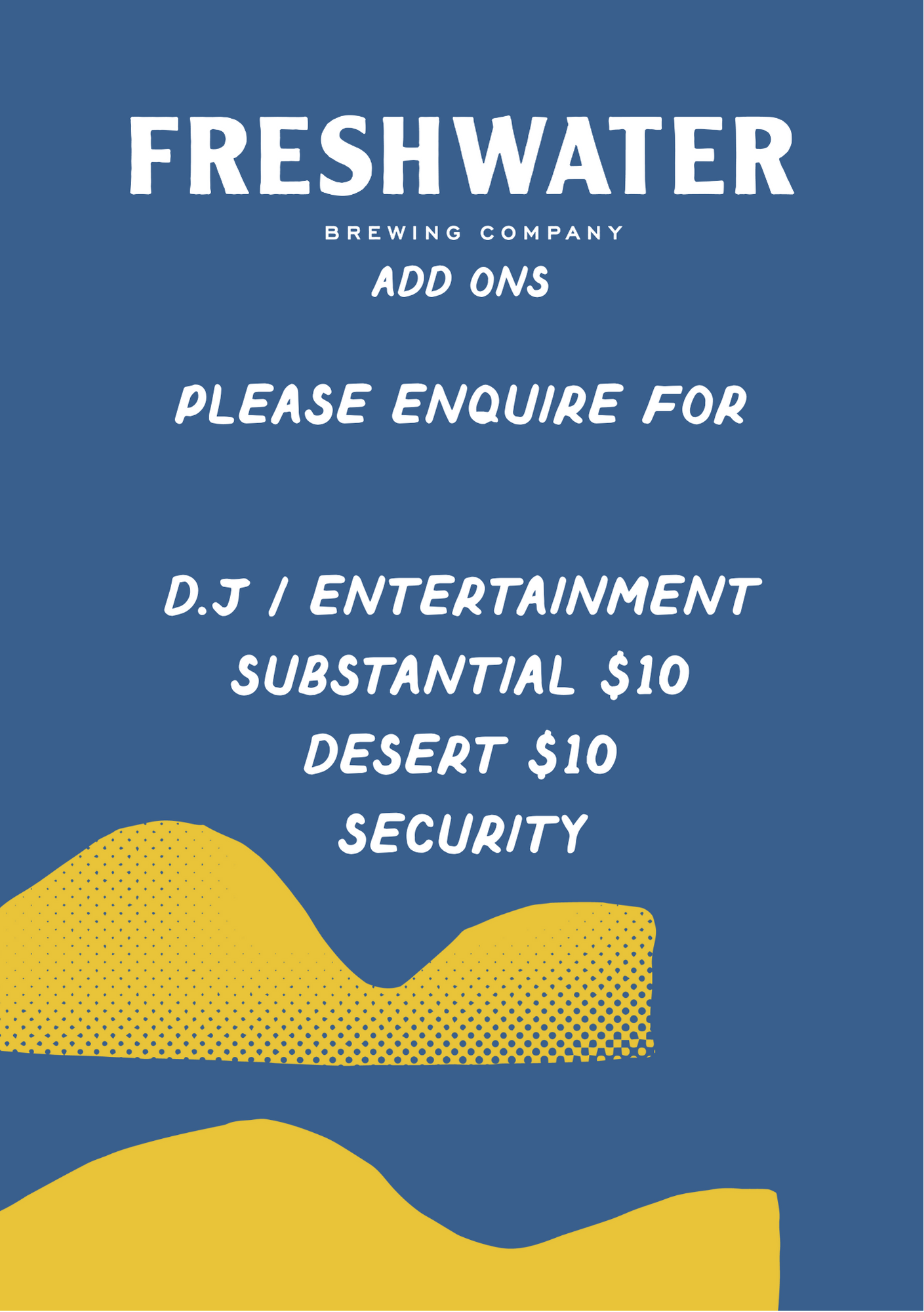 - Freshwater requires the details of any minors attending the function. Our staff are under strict instruction